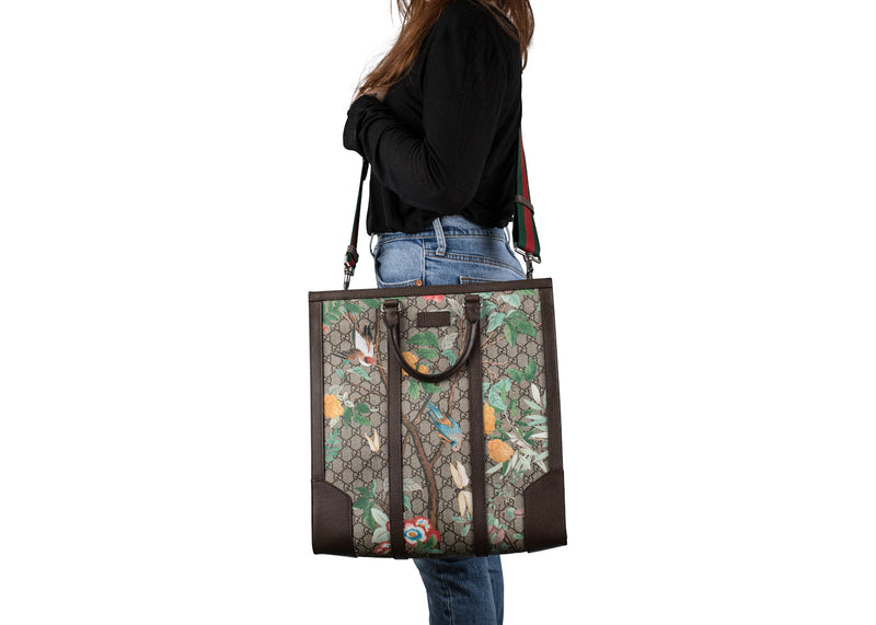 Gucci Convertible Tote Monogram GG Tian Print Brown/Beige/Green/Red