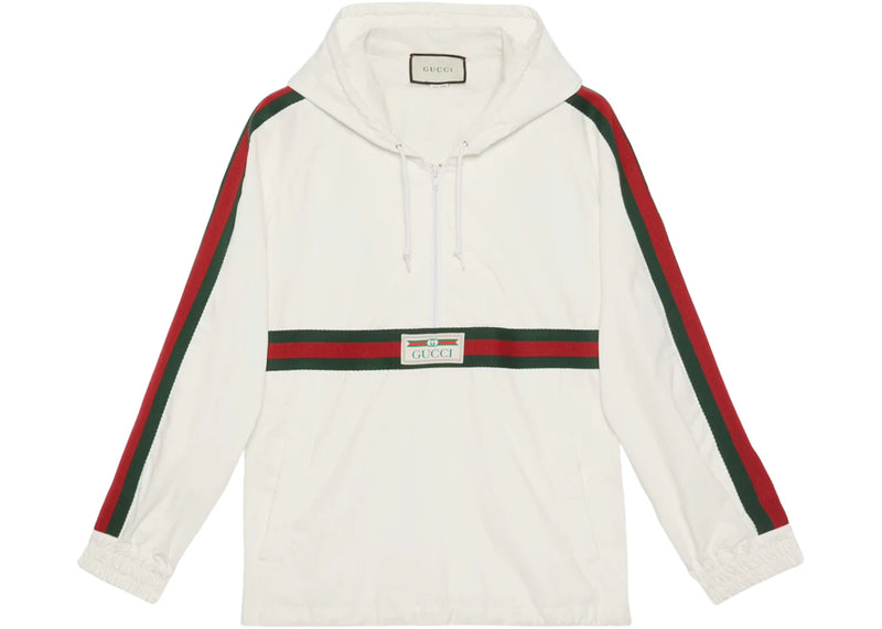 The Gucci Cotton Canvas Windbreaker With Gucci Label White is now available at Side Kicks!