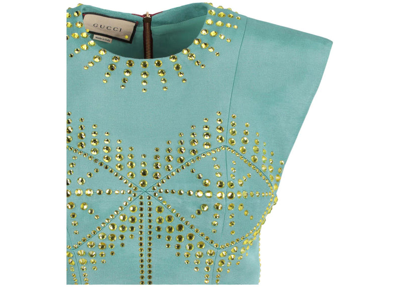 The Gucci Crystal-Embellished Crop Top Light/Blue is now available at Side Kicks!