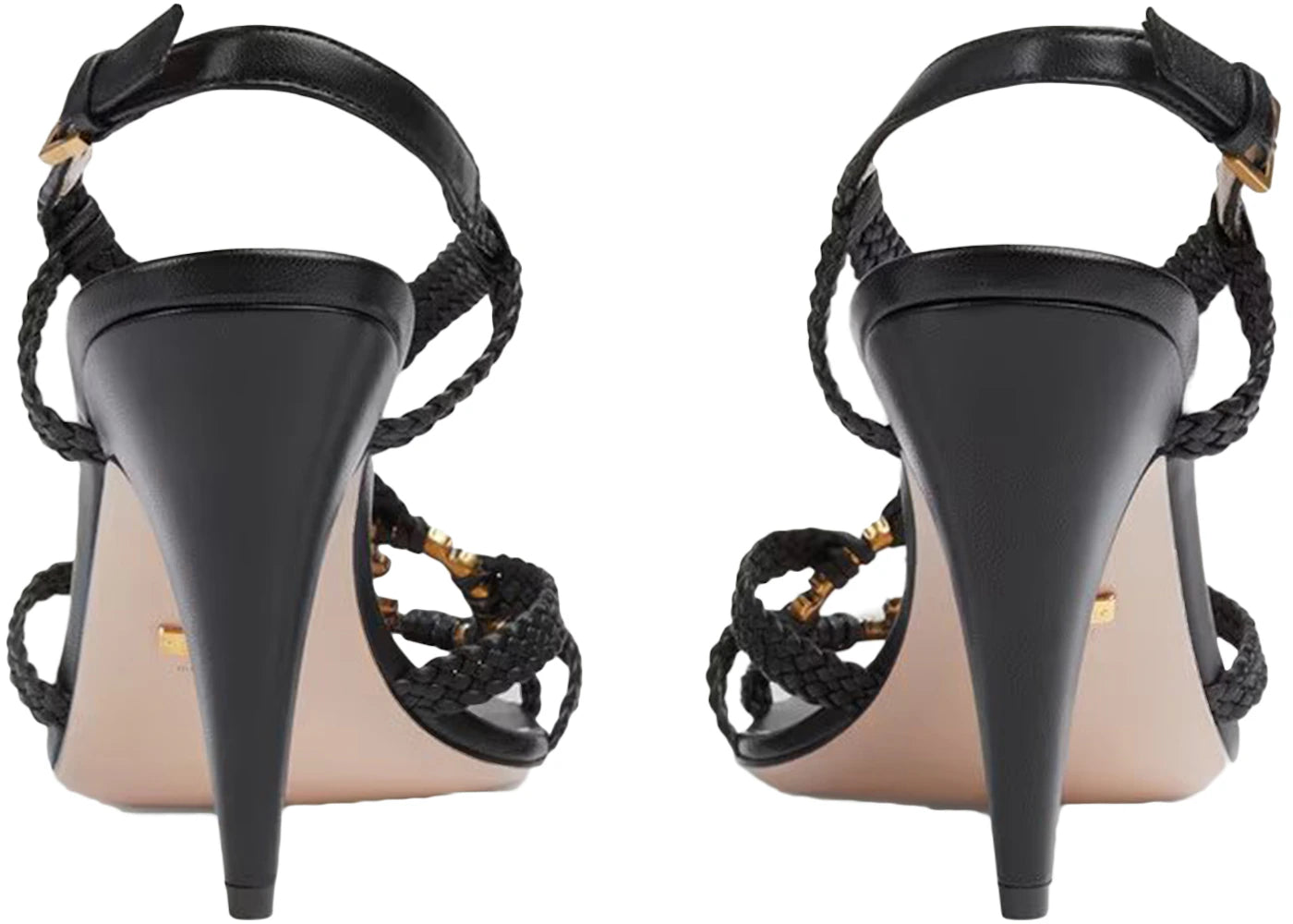 The Gucci Crystal Interlocking G Heeled Sandals Black Braided Leather is now available at Side Kicks!