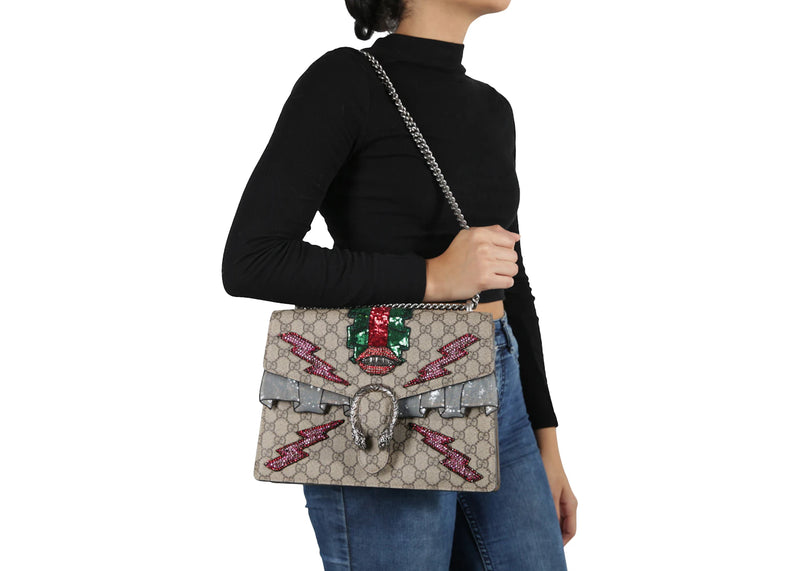 Gucci Dionysus Shoulder Bag GG Supreme Embroidered Medium Brown