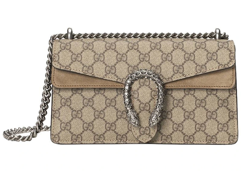 The Gucci Dionysus Shoulder Bag Small GG Supreme Canvas Beige/Ebony is now available at Side Kicks!