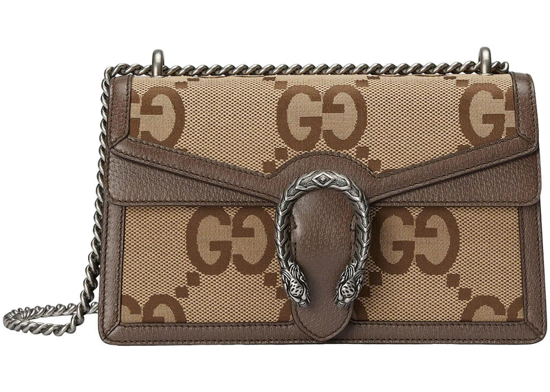 The Gucci Dionysus Shoulder Bag Small Jumbo GG Camel/Ebony is now available at Side Kicks!