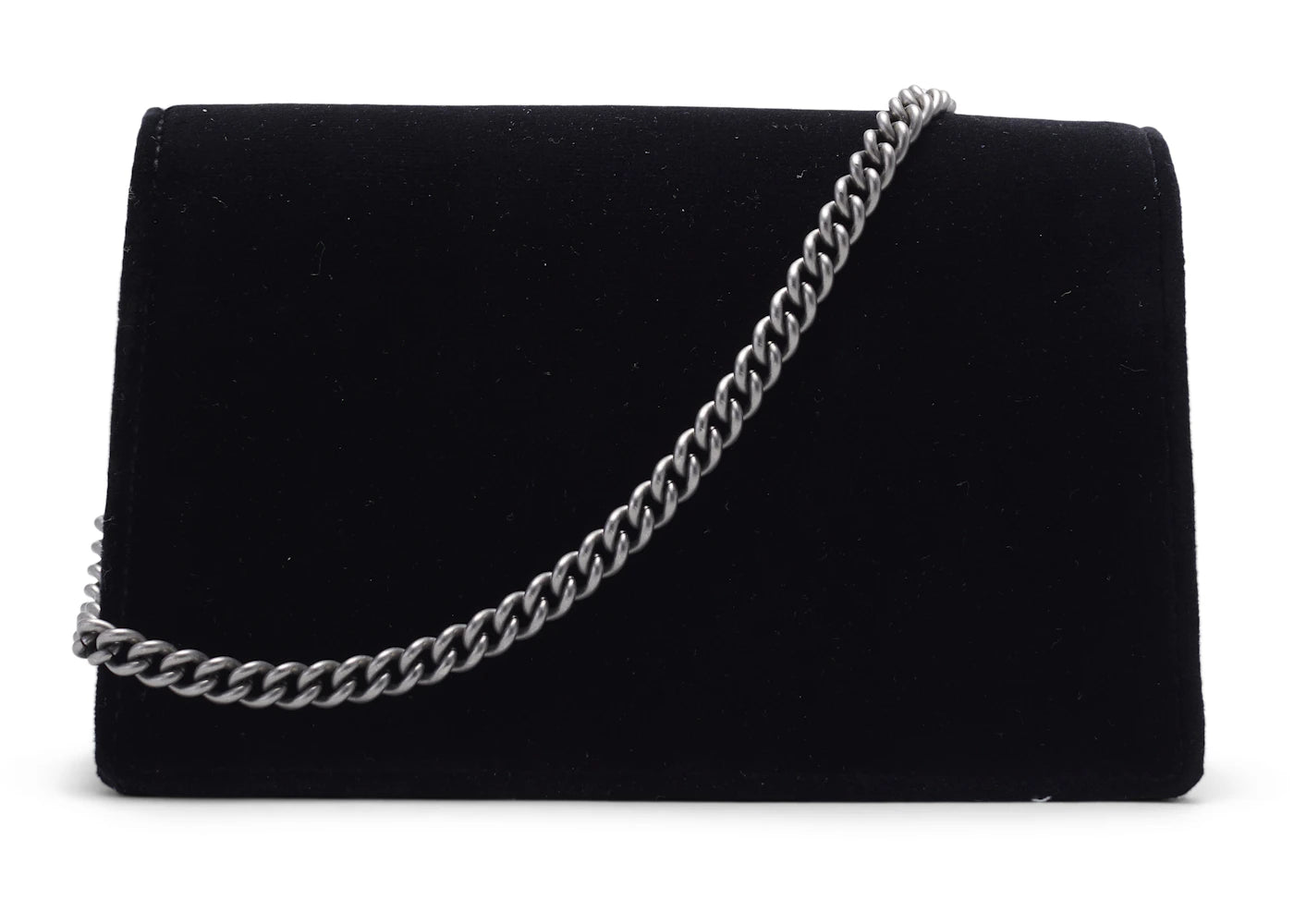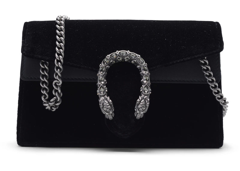 The Gucci Dionysus Velvet Crystal Super Mini Black is now available at Side Kicks!