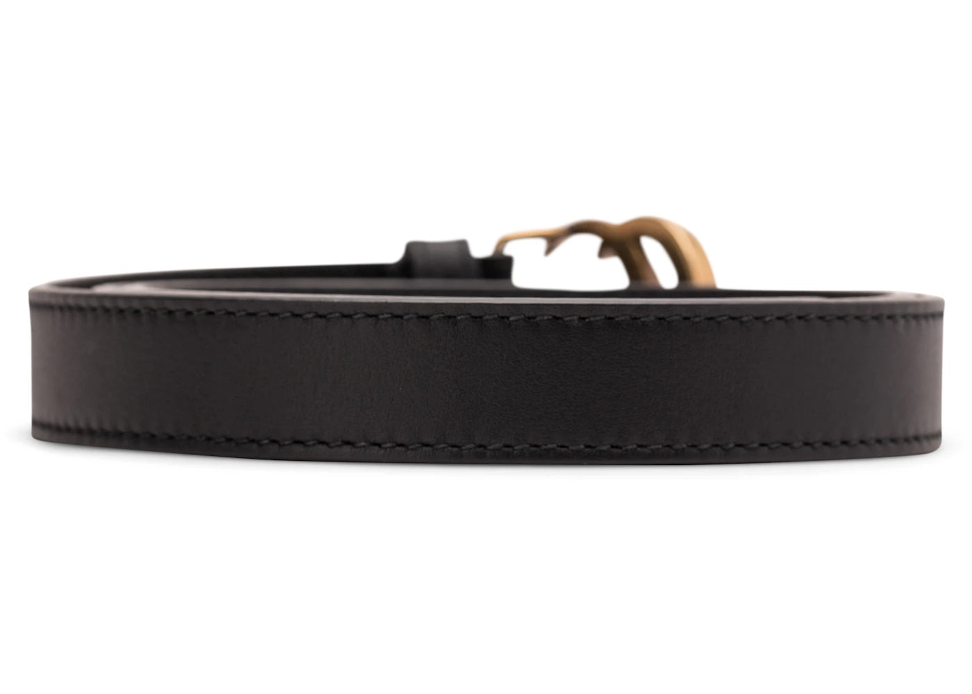 The Gucci Double G Thin Leather Belt Antique Brass Buckle 0.8 Width Black is now available at Side Kicks!