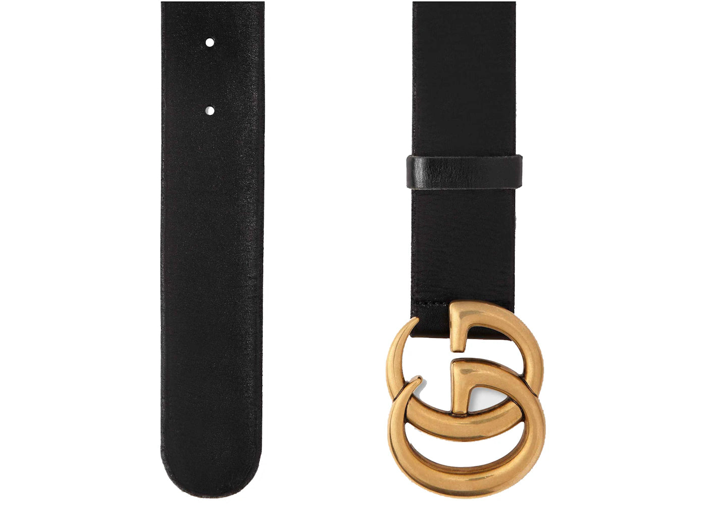 The Gucci Double G Wide Faded Leather Belt Antique Brass Buckle 1.5 Width Black is now available at Side Kicks!