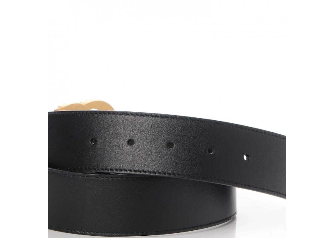 The Gucci Double G Wide Leather Belt Pearl Buckle 1.5 Width Black is now available at Side Kicks!