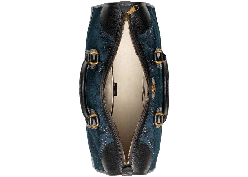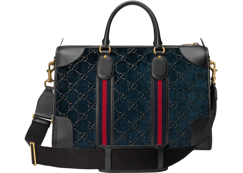 The Gucci Duffle GG Velvet Medium Blue is now available at Side Kicks!