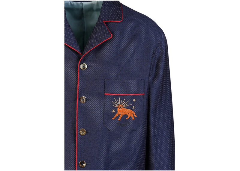 The Gucci Fine Dots Feline Jacket Dark Blue is now available at Side Kicks!