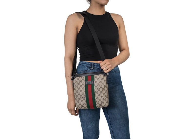 Gucci Flat Messenger GG Supreme Web Beige/Black