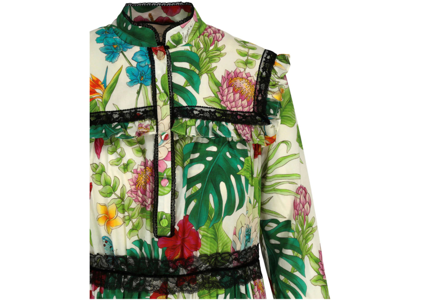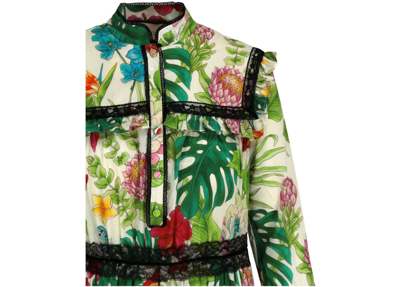 The Gucci Floral-Print Lace-Trim Muslin Dress Multi is now available at Side Kicks!