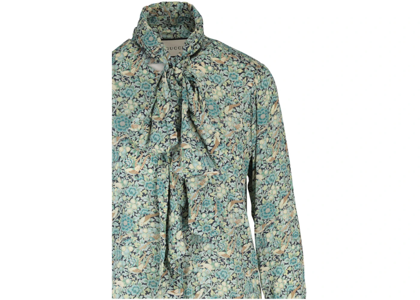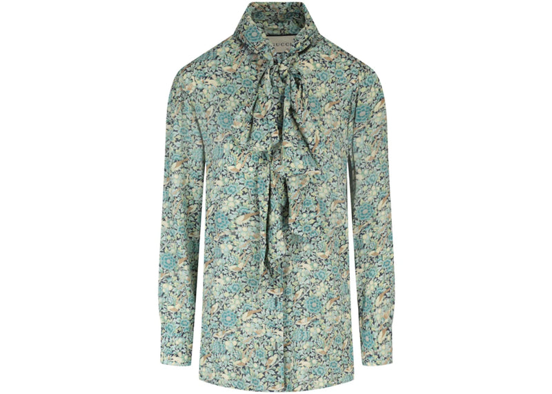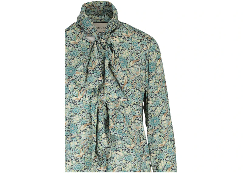 The Gucci Floral Print Tie Neck Long Sleeve Blouse Blue is now available at Side Kicks!