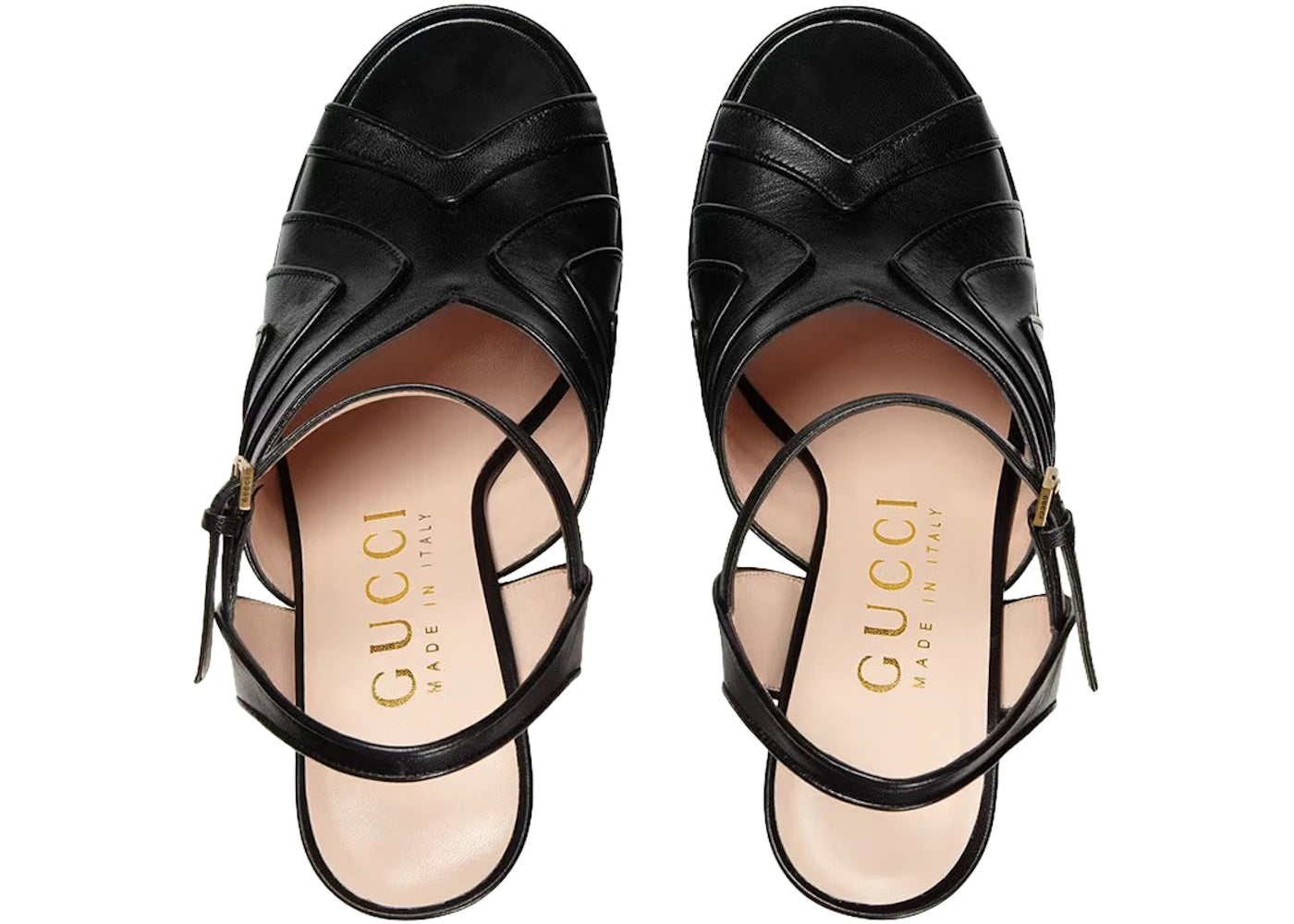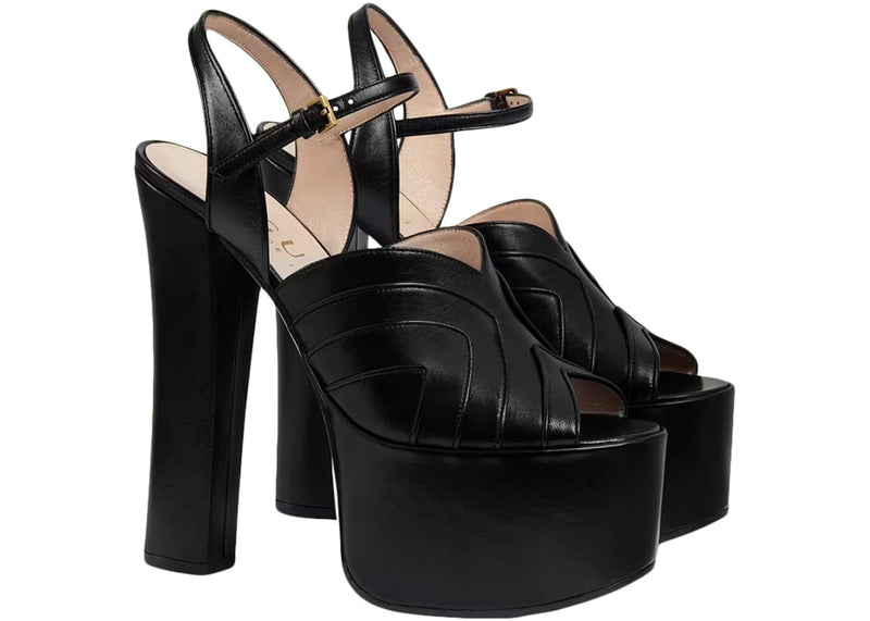 The Gucci Geometric 155 mm Platform Sandal Black Leather is now available at Side Kicks!