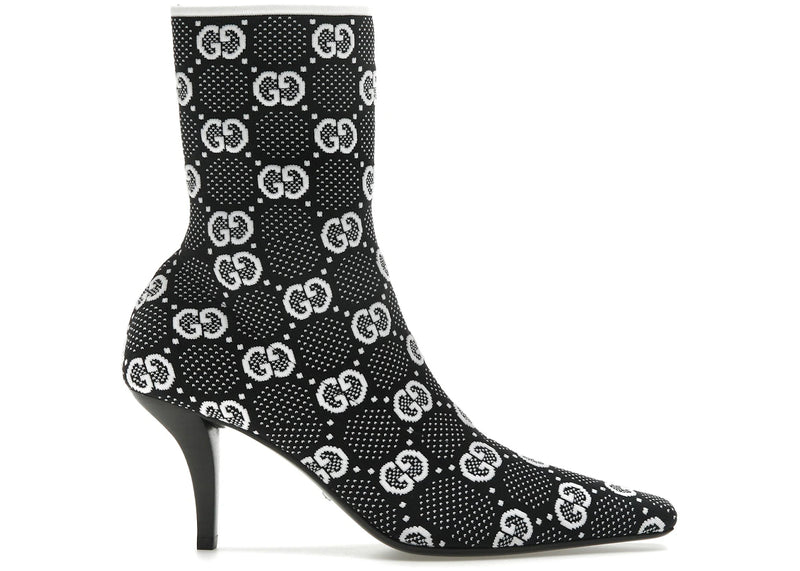 The Gucci GG 75mm Knit Ankle Boots Black White Fabric is now available at Side Kicks!