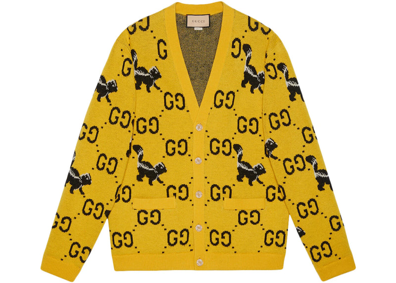 The Gucci GG And Skunk Jacquard Wool Knit Cardigan Yellow/Black is now available at Side Kicks!