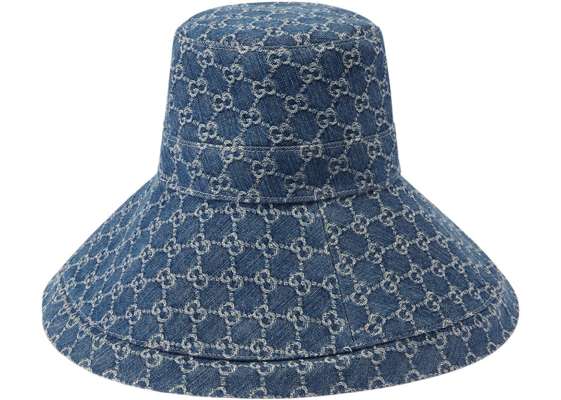 The Gucci GG Canvas Wide Brim Hat Blue/Ivory is now available at Side Kicks!