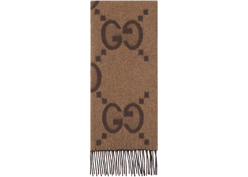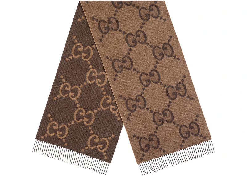 The Gucci GG Cashmere Jacquard Scarf Beige/Dark Brown is now available at Side Kicks!
