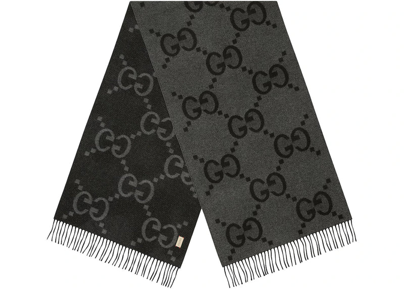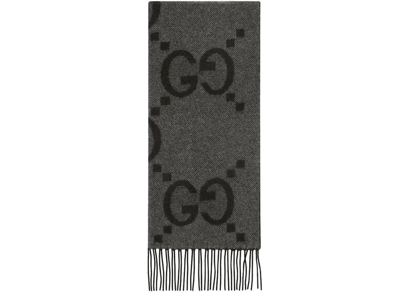 The Gucci GG Cashmere Jacquard Scarf Dark Grey/Black is now available at Side Kicks!