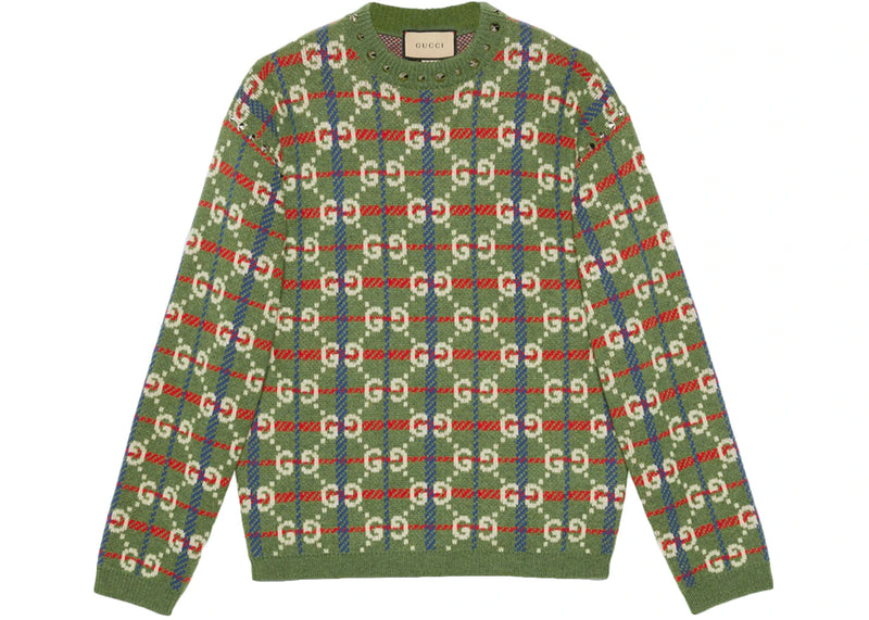 The Gucci GG Check Knit Wool Sweater Green/Blue/White/Red is now available at Side Kicks!