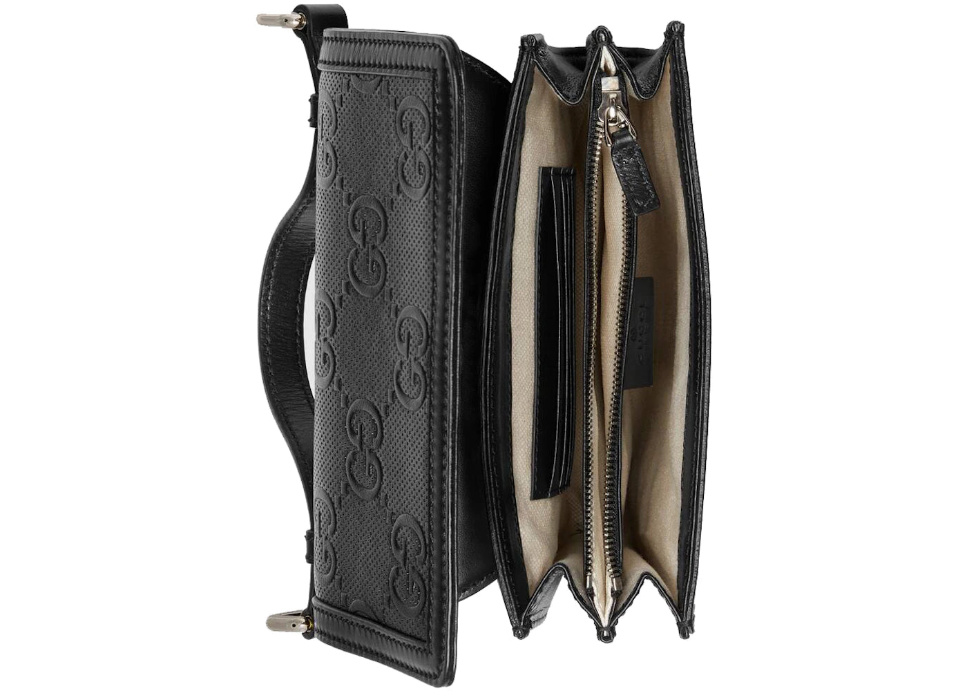 The Gucci GG Embossed Messenger Bag Black is now available at Side Kicks!