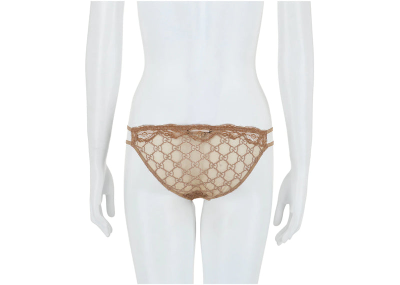 The Gucci GG Embroidered Tulle Bikini Briefs Beige is now available at Side Kicks!