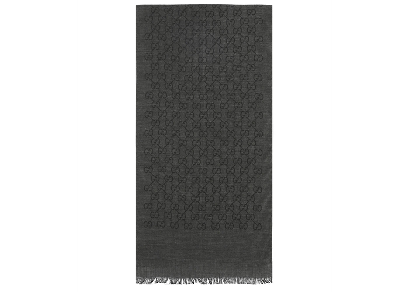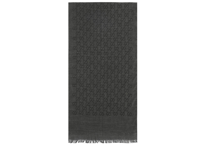 The Gucci GG Jacquard Pattern Knit Scarf Anthracite is now available at Side Kicks!
