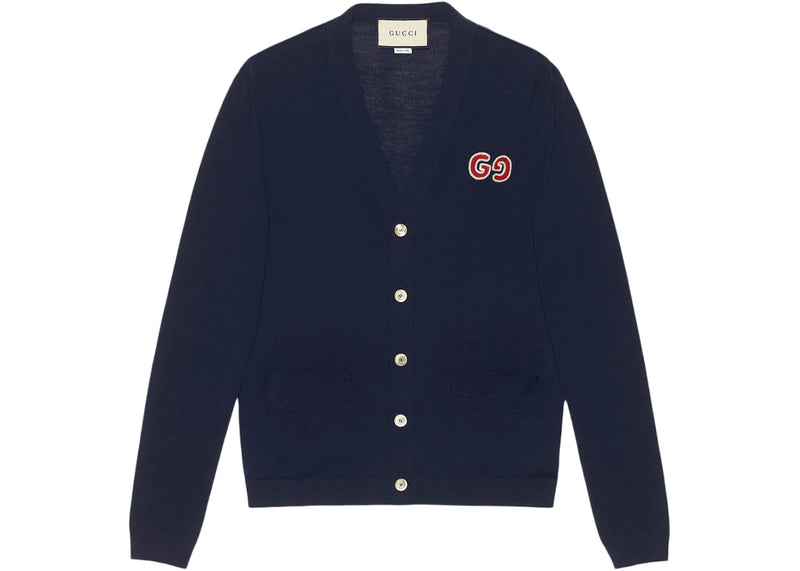 The Gucci GG Logo Patch Cardigan Dark Blue is now available at Side Kicks!