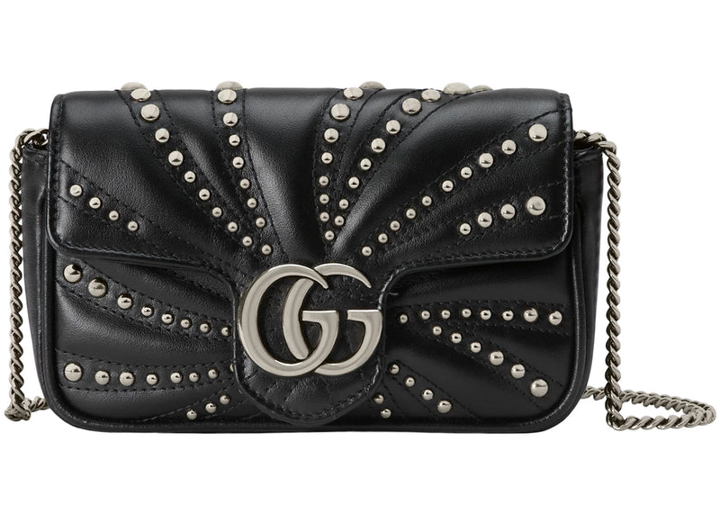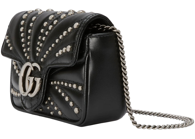 Gucci GG Marmont Bag Super Mini Quilted Spiral Studded Black