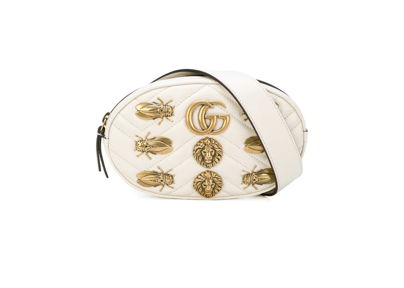 The Gucci GG Marmont Belt Bag Matelasse Animal Studs White is now available at Side Kicks!