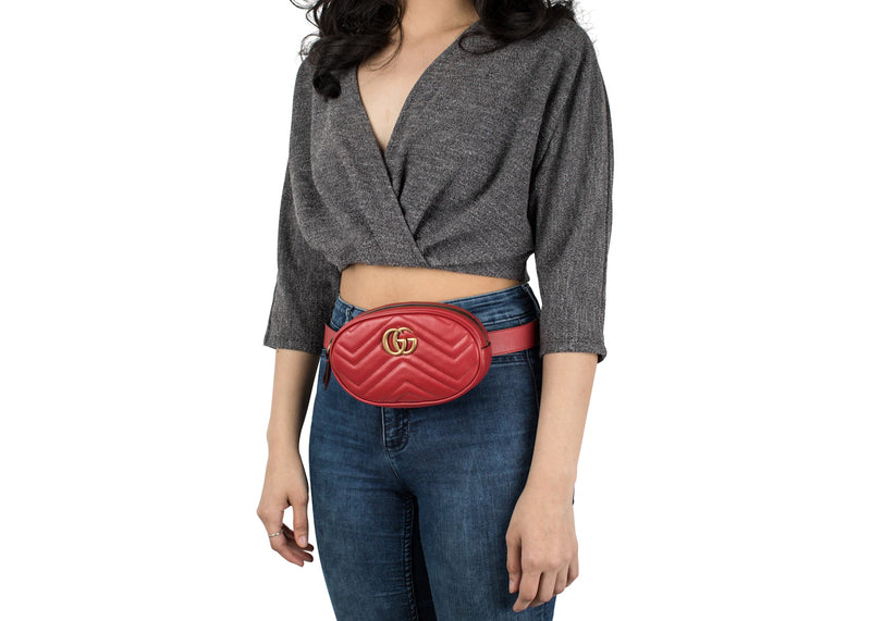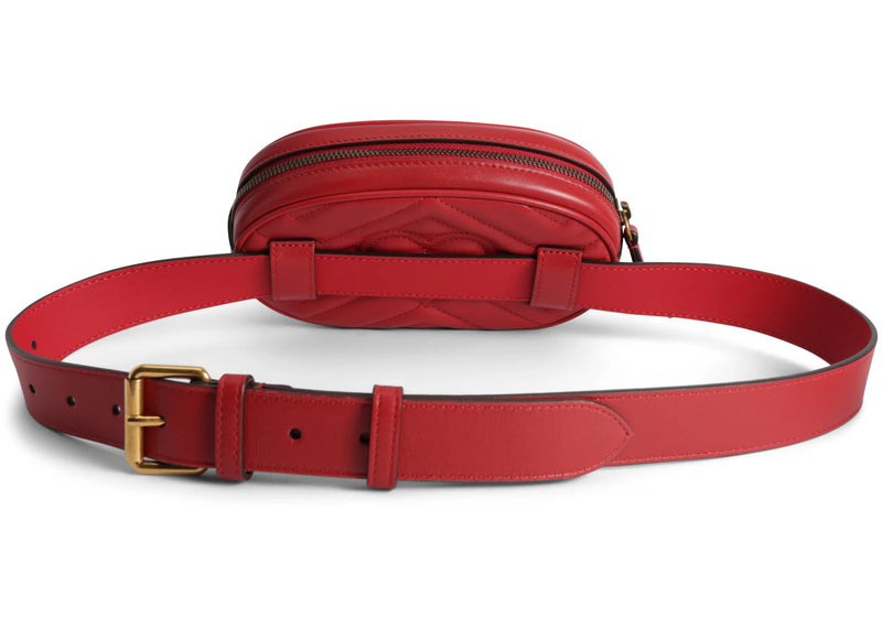 The Gucci GG Marmont Belt Bag Matelasse Hibiscus Red is now available at Side Kicks!