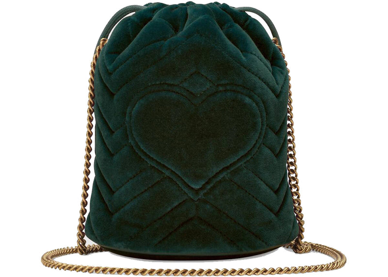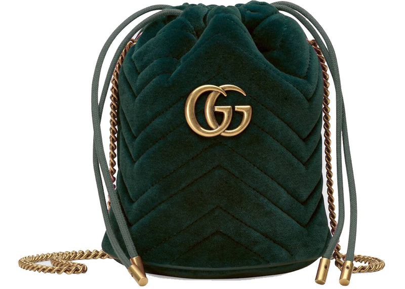 Gucci GG Marmont Bucket Bag Velvet Mini Dark Green