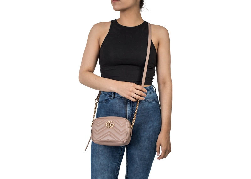 Gucci GG Marmont Camera Bag Matelasse Mini Dusty Pink