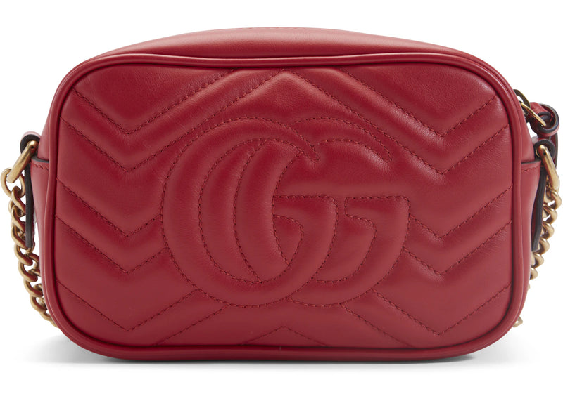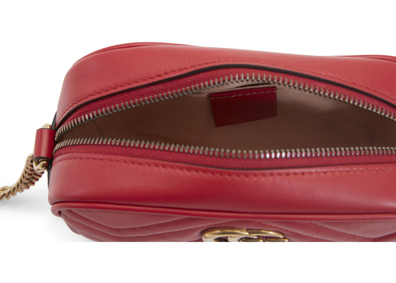 Gucci GG Marmont Camera Bag Matelasse Mini Hibiscus Red