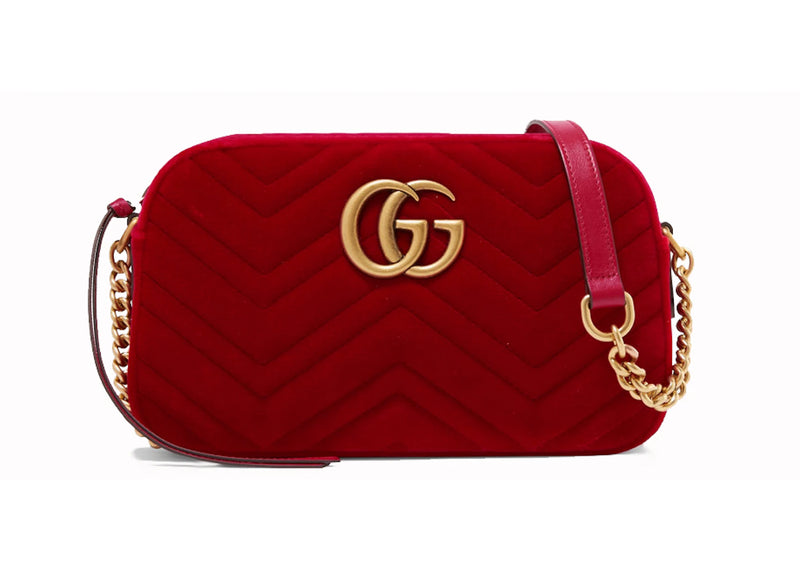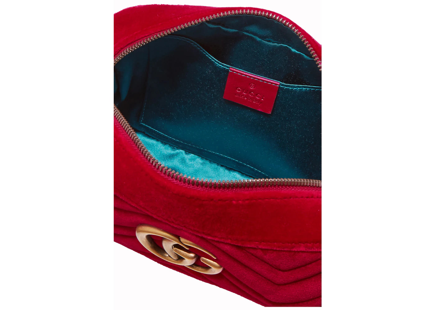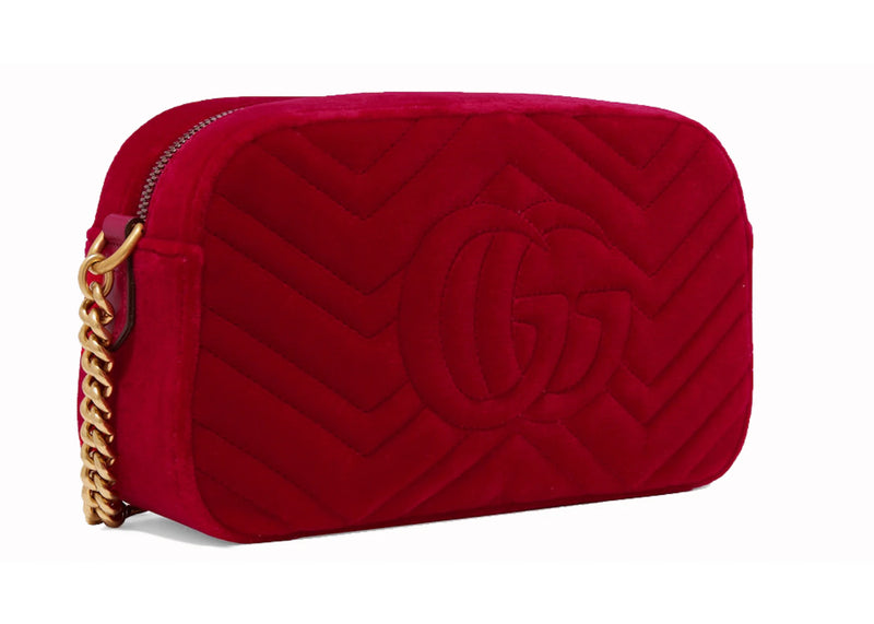 Gucci GG Marmont Camera Bag Matelasse Velvet Small Hibiscus Red
