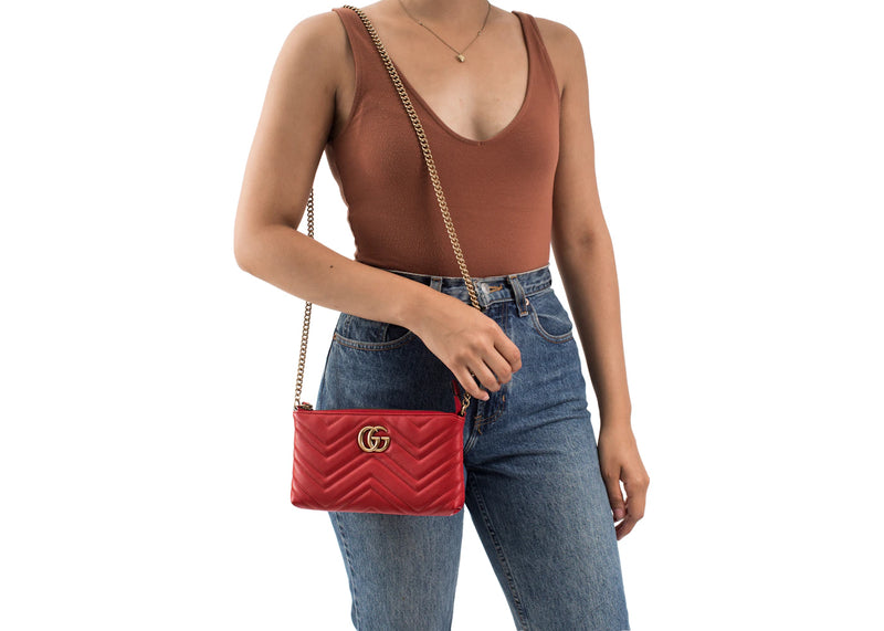 Gucci GG Marmont Chain Bag Matelasse Mini Red