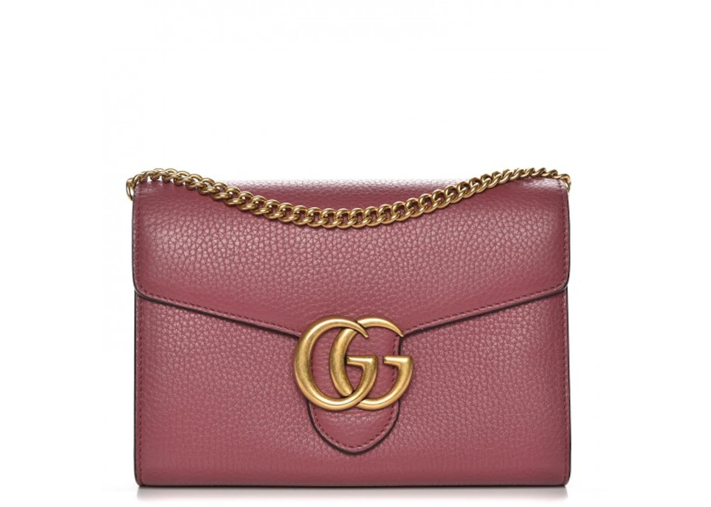 The Gucci GG Marmont Chain Wallet Dark Pink is now available at Side Kicks!