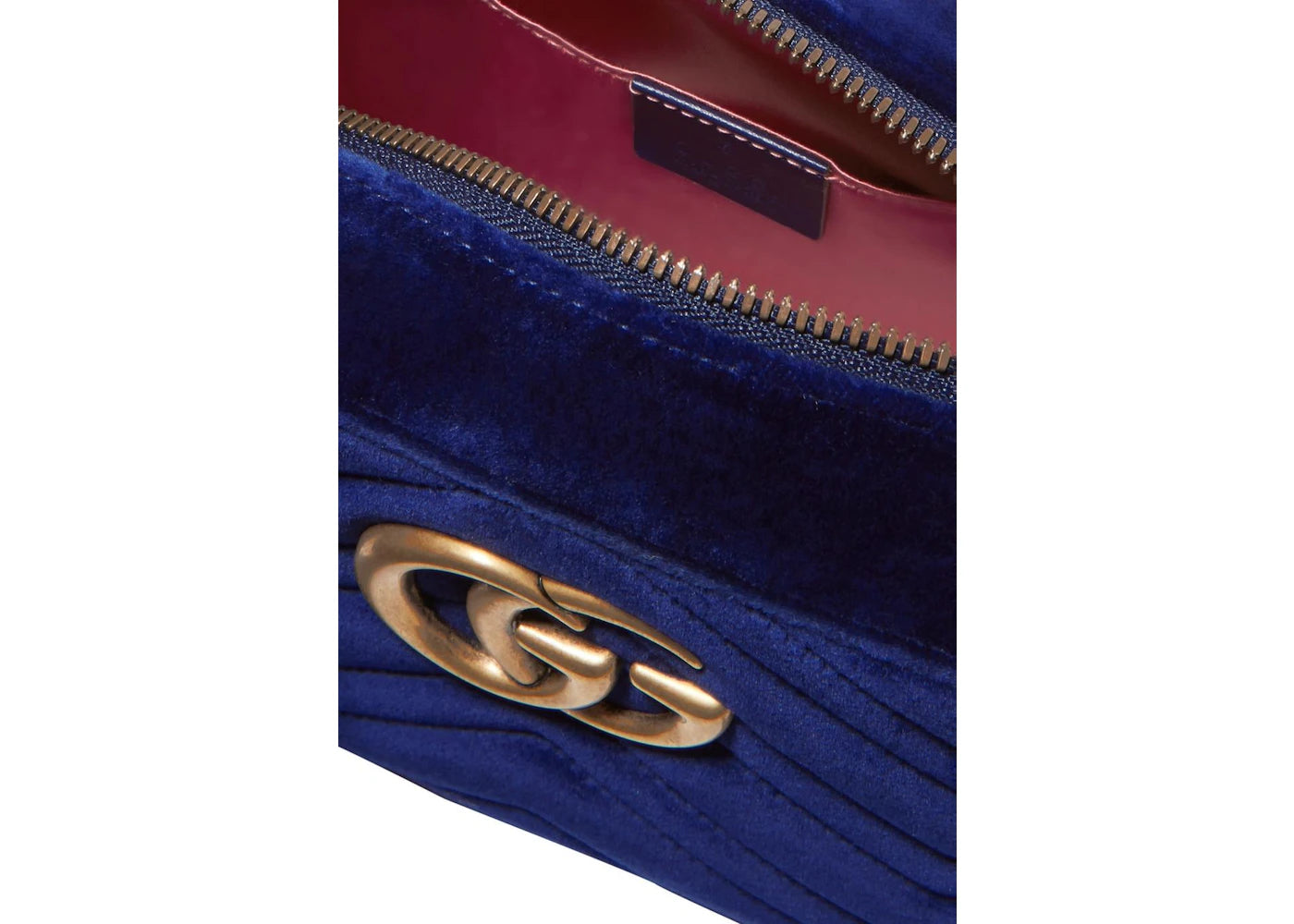 Gucci GG Marmont Crossbody Matelasse Velvet Small Cobalt Blue
