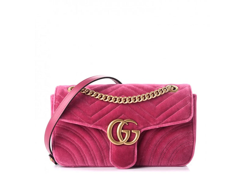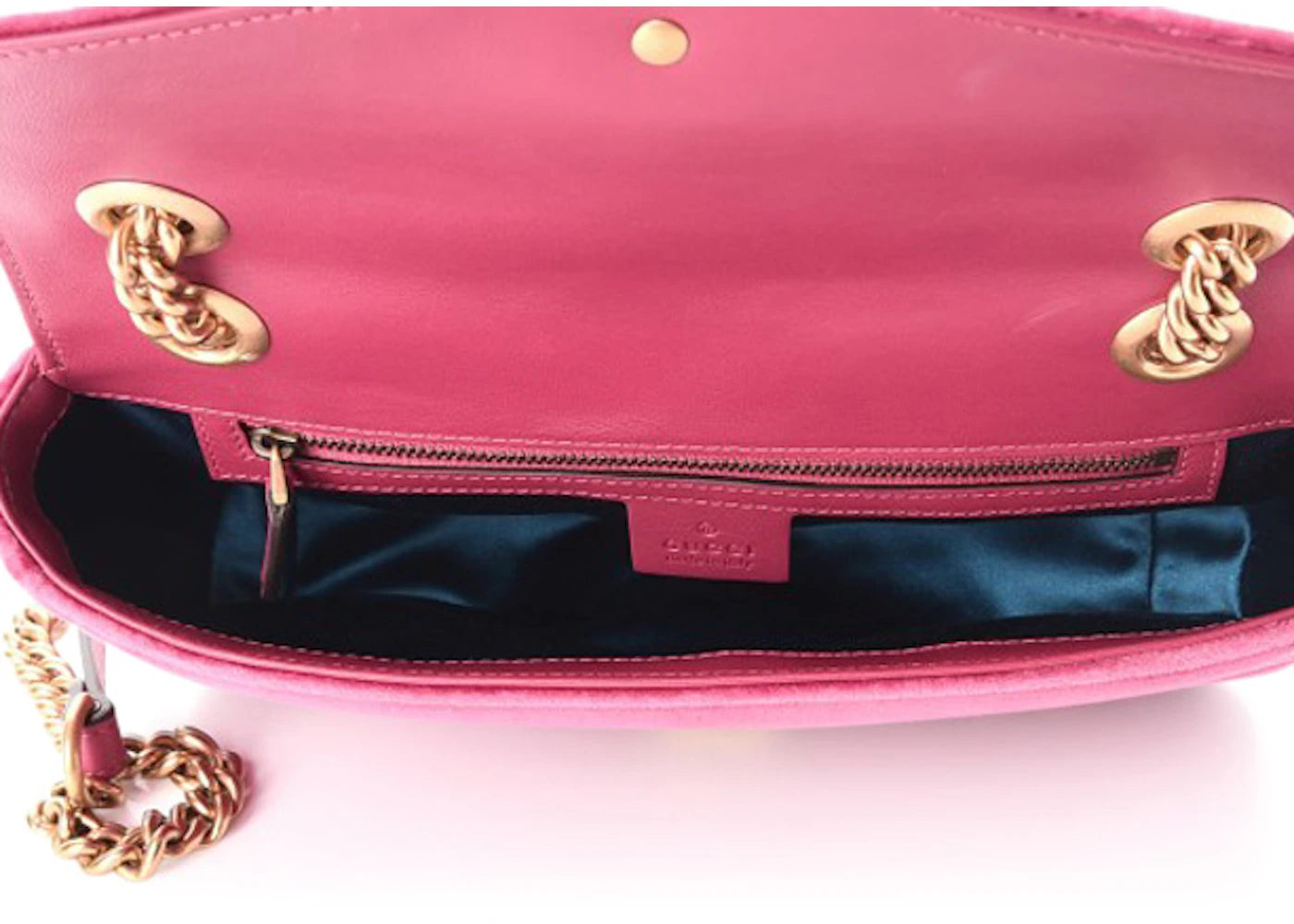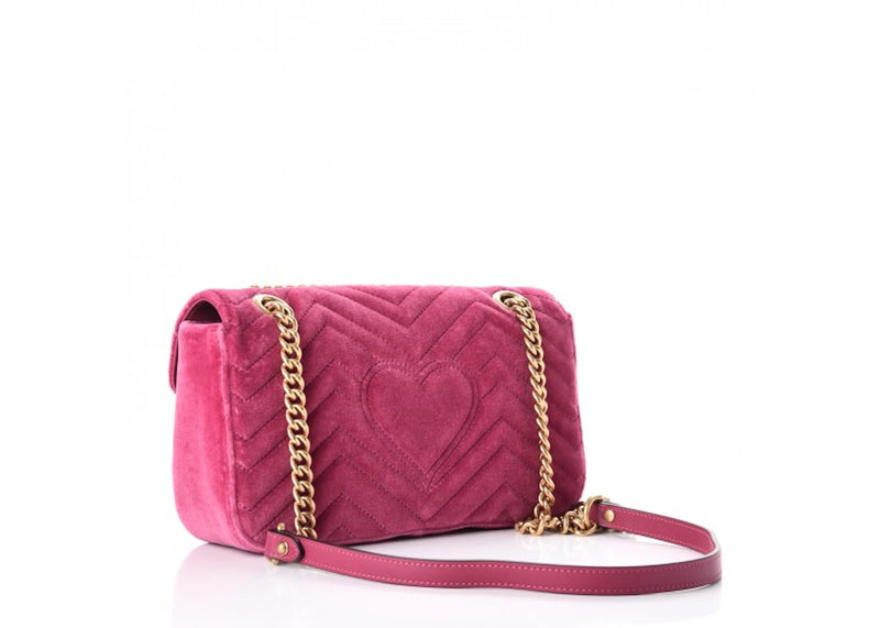 The Gucci GG Marmont Matelasse Velvet Small Pink is now available at Side Kicks!