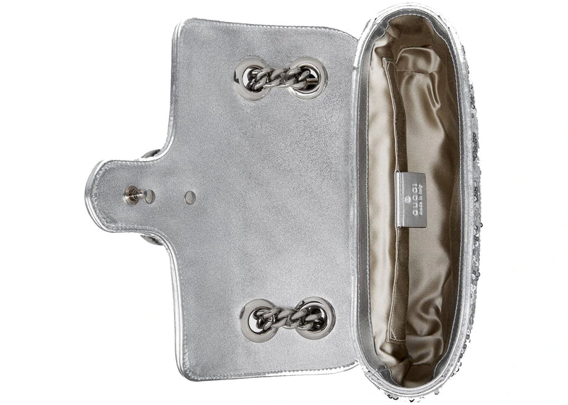The Gucci GG Marmont Mini Sequin Shoulder Bag Silver is now available at Side Kicks!