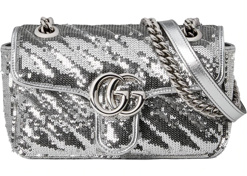 Gucci GG Marmont Mini Sequin Shoulder Bag Silver