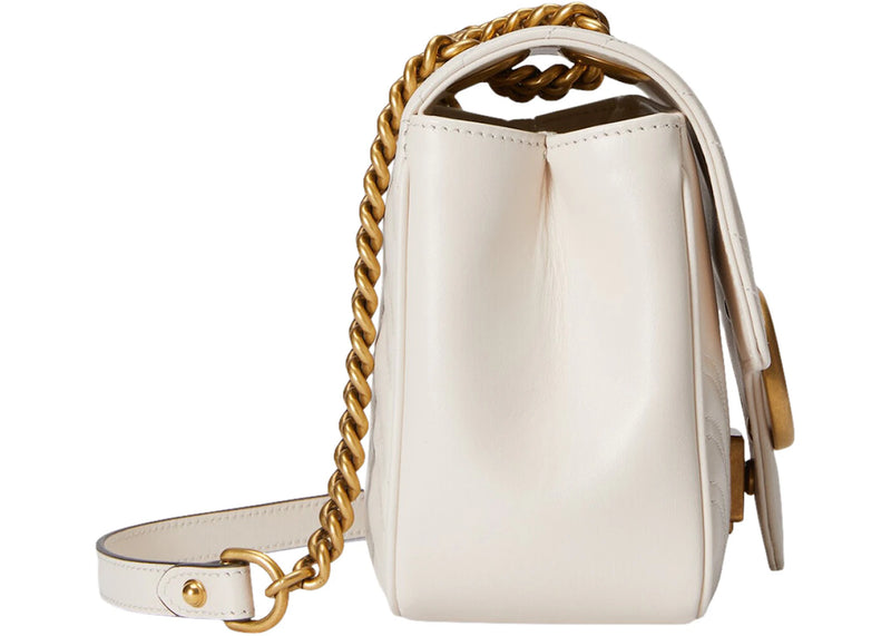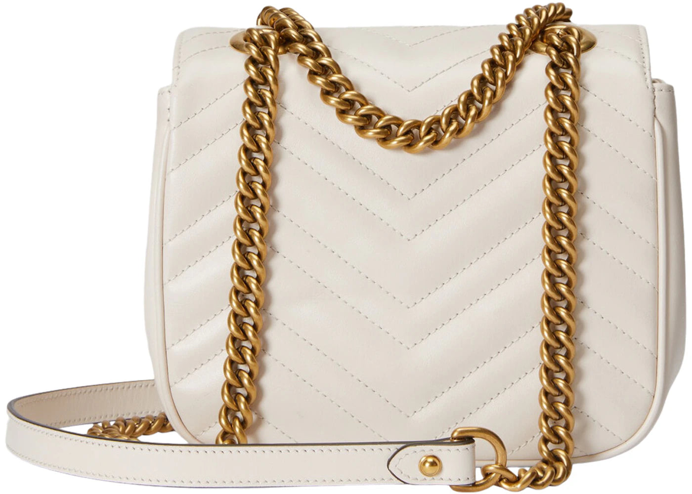 The Gucci GG Marmont Mini Shoulder Bag Matelasse Chevron White is now available at Side Kicks!