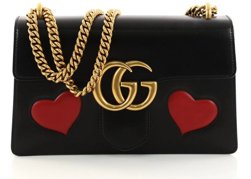 Gucci GG Marmont Patchwork Hearts Medium Black