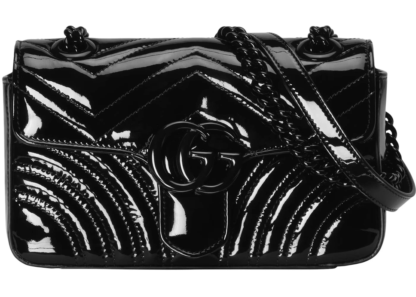 Gucci GG Marmont Patent Mini Shoulder Bag Black Patent Leather