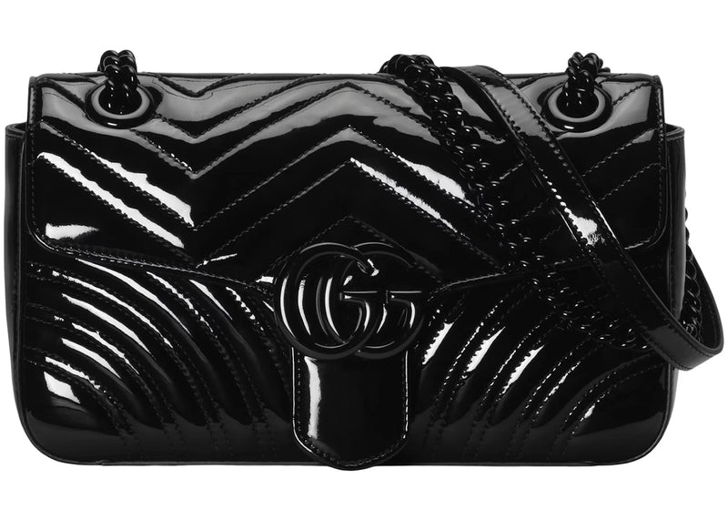 Gucci GG Marmont Patent Small Shoulder Bag Black Patent Leather