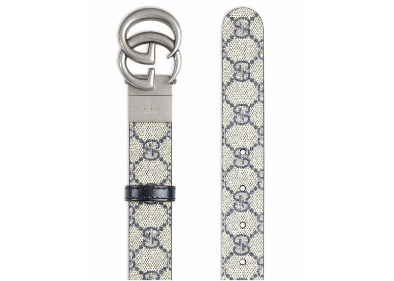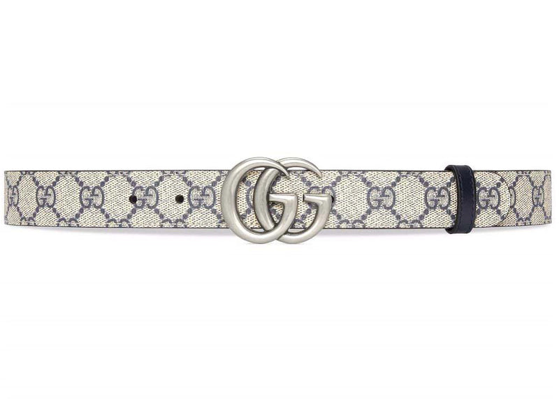 The Gucci GG Marmont Reversible Belt Beige/Navy is now available at Side Kicks!