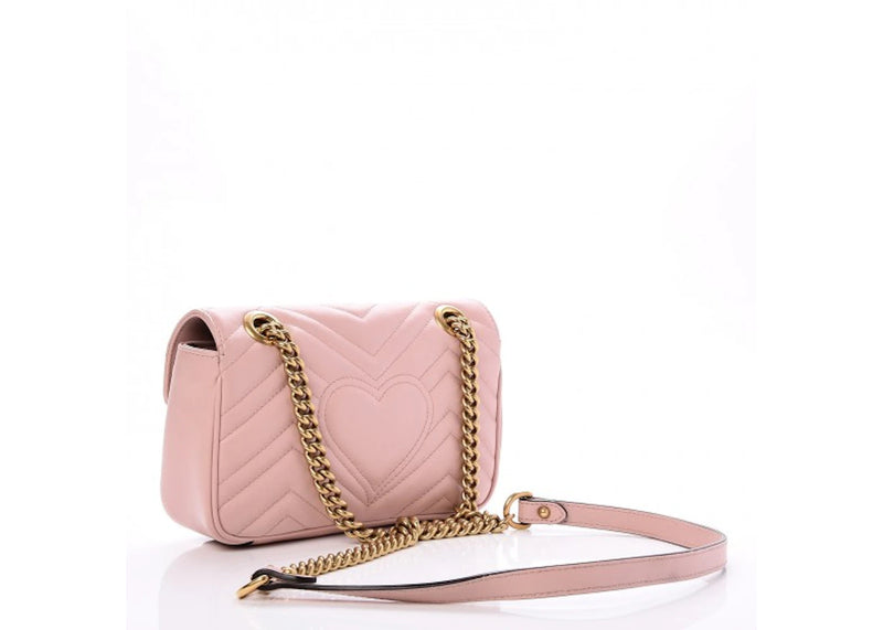 The Gucci GG Marmont Shoulder Bag Matelasse Mini Light Pink is now available at Side Kicks!