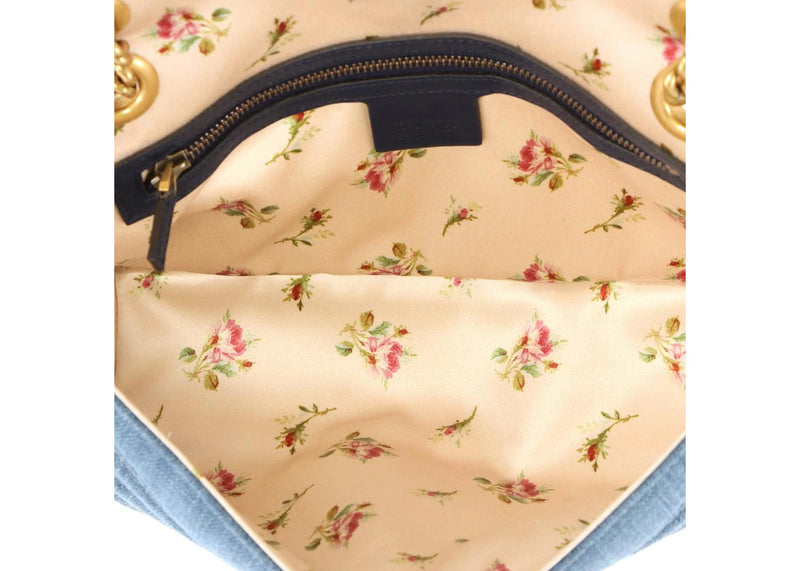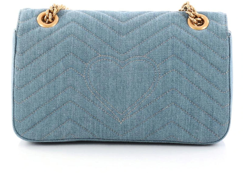 Gucci GG Marmont Shoulder Bag Matelasse Pearly Small Denim