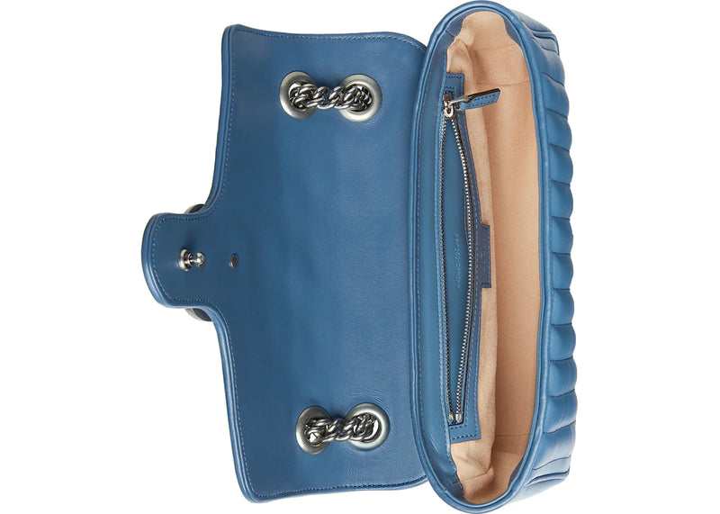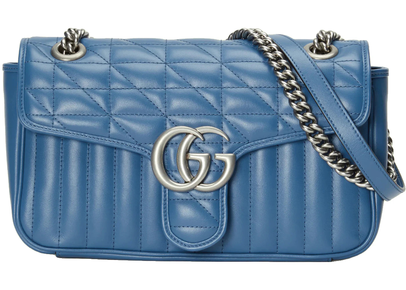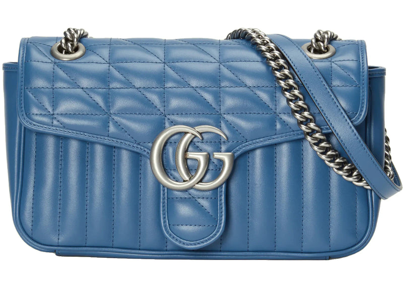 The Gucci GG Marmont Small Blue Matelasse is now available at Side Kicks!