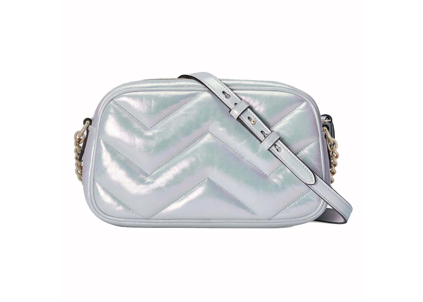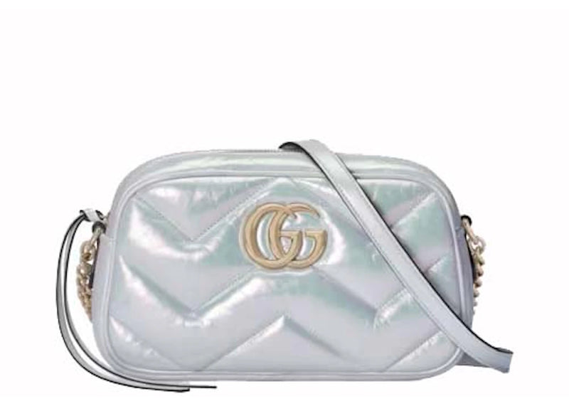 The Gucci GG Marmont Small Camera Shoulder Bag Green Iridescent is now available at Side Kicks!
