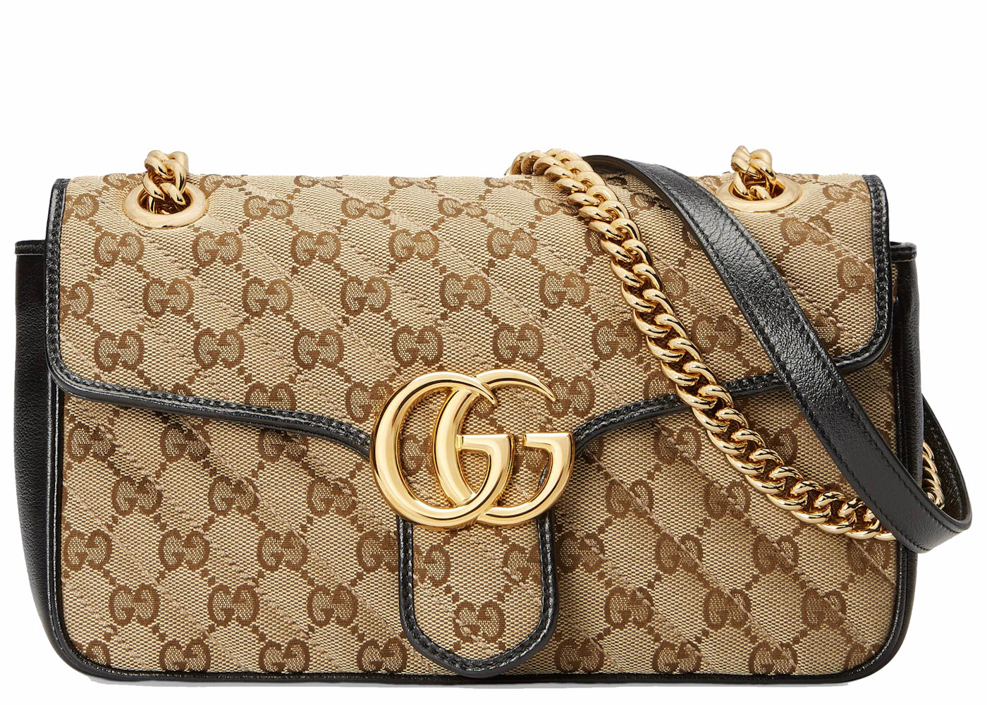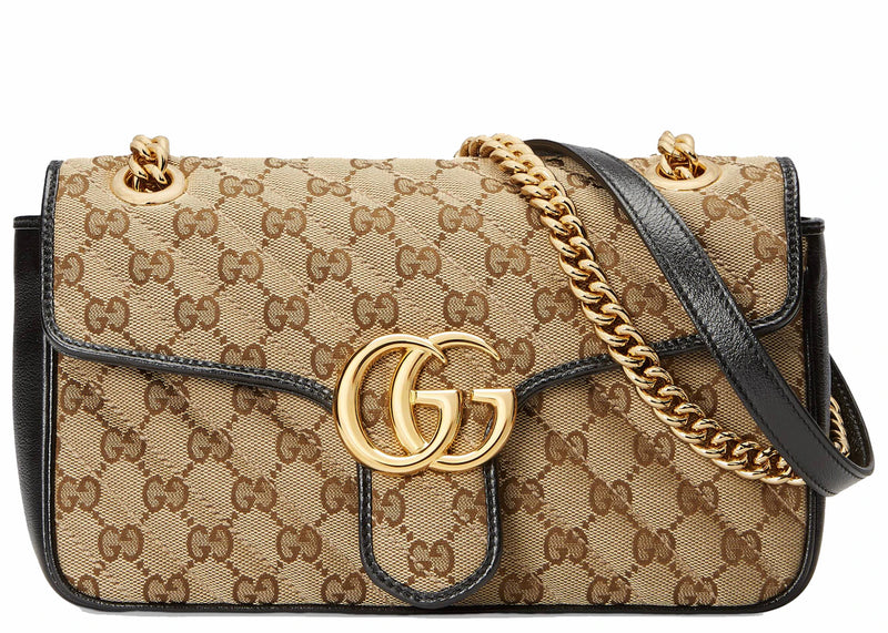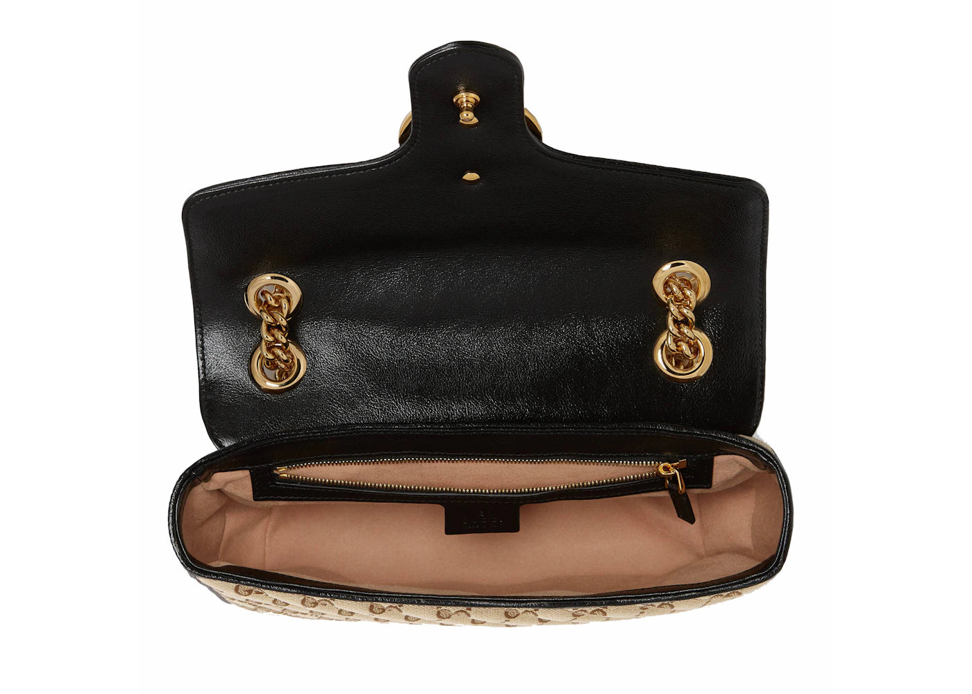 Gucci GG Marmont Small Diagonal Matelasse Bag Original GG Canvas Beige/Ebony